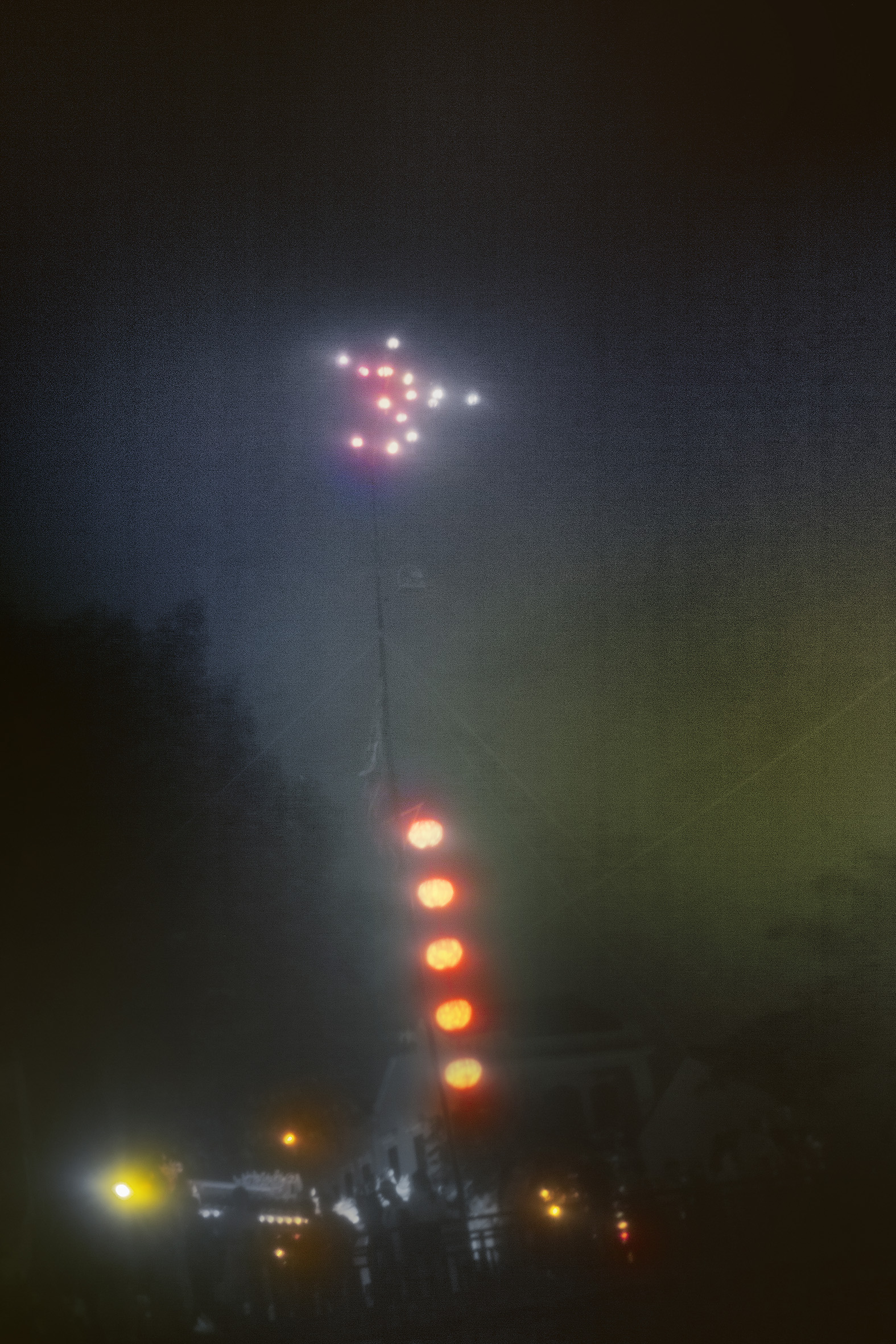 Fish swim through the starry sky, a few scales clinging to the dragonfly’s wings. The wings are heavy, the dragonfly signals the wind, the wind gathers into a storm. The storm sweeps away the scales from the dragonfly’s wings. The scales drift with the storm to the human world, touching leaves. After sleeping for a night, dew settles like a starry dome. It drips into the frog’s mouth. The frog leaps high out of the water, again and again, escaping the fish’s bite. At night, fish swim through the starry sky, a few scales clinging to the dragonfly’s wings. The wings are heavy.