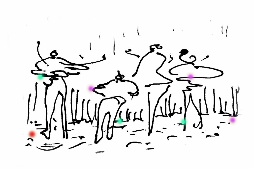 dưới góc cây ẩm ướt.