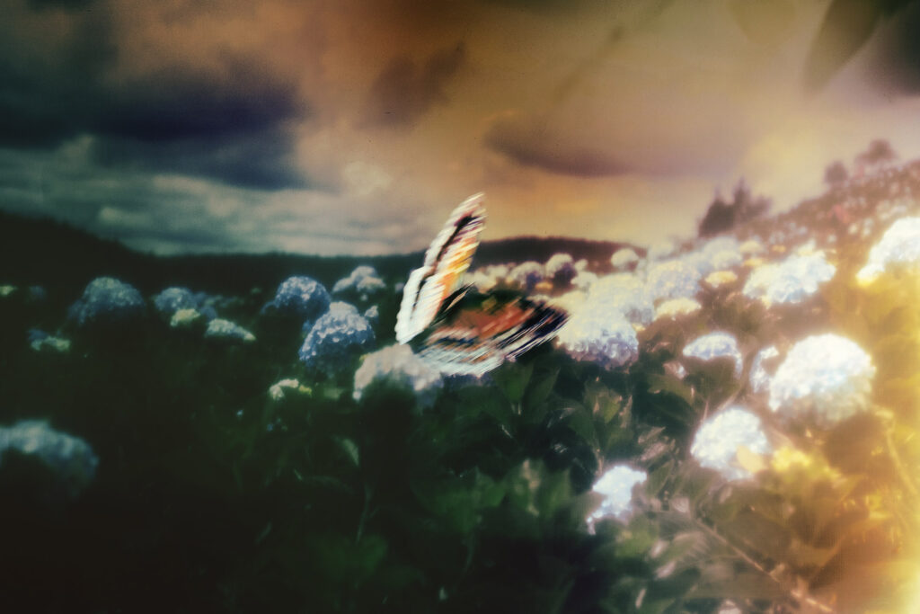 This photo series is called Flowers for Monday Blues. I originally wanted to make it for Instagram because I think Monday is a pretty boring day of the week, so I’ll post something sweet to keep everyone going. I took pictures of flowers and flower fields in Da Lat Flower City (Vietnam). Then I thought, I want to feel something grand, so I added fake butterflies and ribbons. These butterflies are really lively. But like the nature of impermanence. Even though they are fake butterflies, the moment in the photo is a time stop, a moment to think about the meaning of truth and what is false. From there, the most important thing is that I don’t need to know if it’s real or fake; I just need to know that I had time to think and look at these fake butterflies while taking the photo. They are also very lovely.