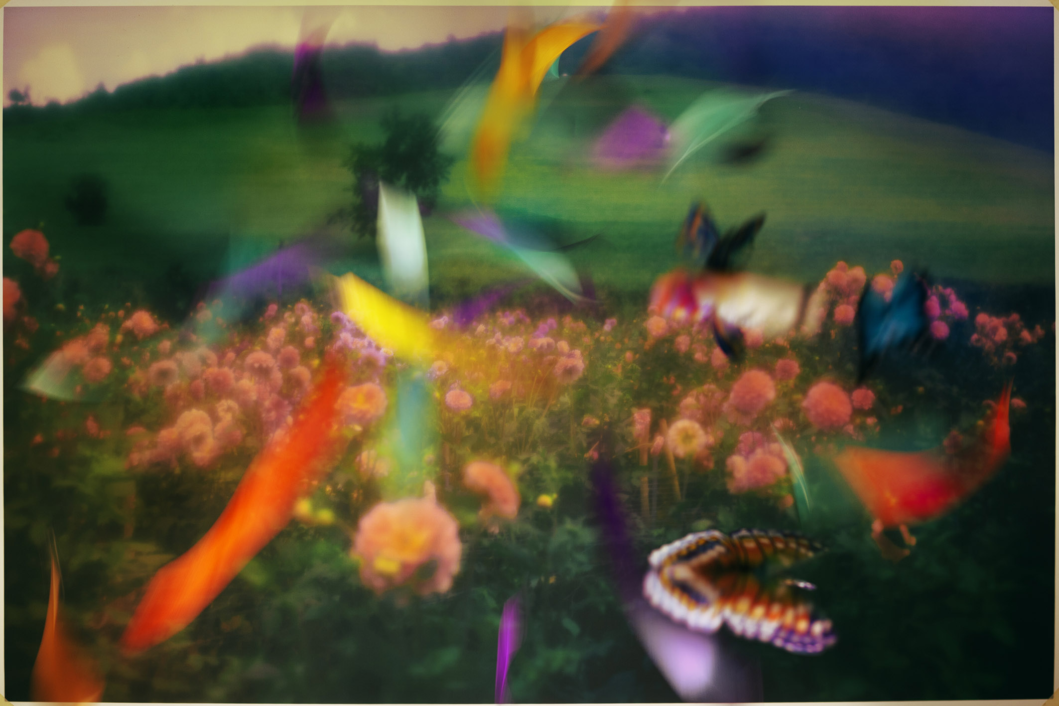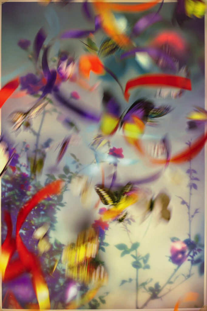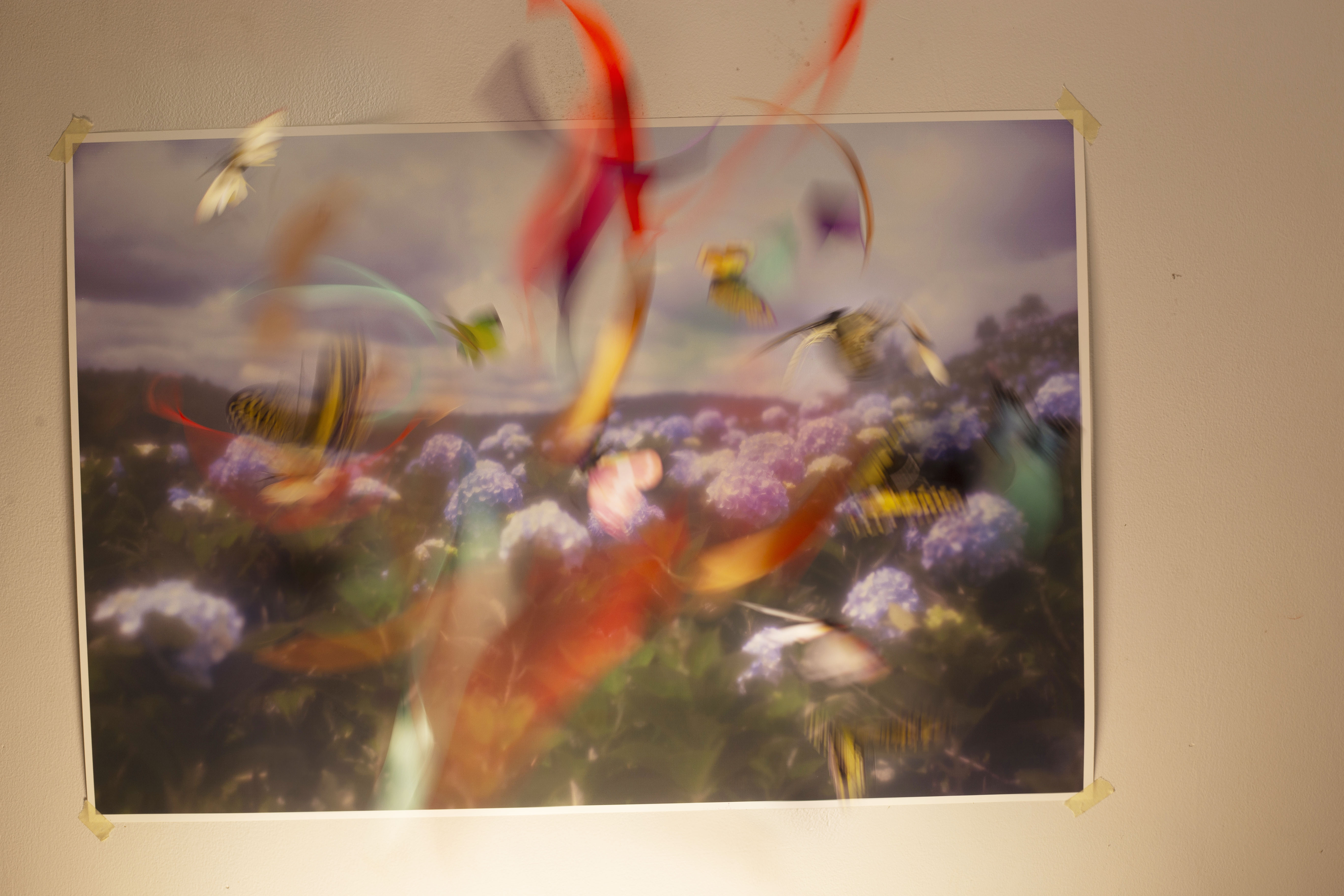 Tôi đã chụp các hoa và cánh đồng hoa ở Tp Hoa Đà Lạt. Sau đó tôi nghĩ rằng, tôi muốn cảm giác gì đó hoành tráng nên đã thêm bướm giả và ruy băng. Các chú bướm này thực sự rất sống động. Nhưng cũng giống như tính chất của sự vô thường. Dẫu rằng nó là bướm giả, nhưng khoảnh khắc trong bức ảnh là sự ngưng đọng thời gian, một lát cắt để ngẫm nghĩ về ý nghĩa của sự thật và sự giả là gì? Từ đó điều quan trọng nhất tôi không cần biết nó là thật hay giả, tôi chỉ cần biết tôi đã có thời gian để ngẫm nghĩ và ngắm nhìn các chủ bướm giả này trong khi chụp. Chúng cũng rất đáng yêu mà.