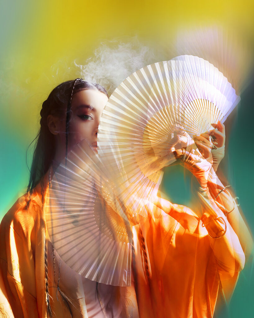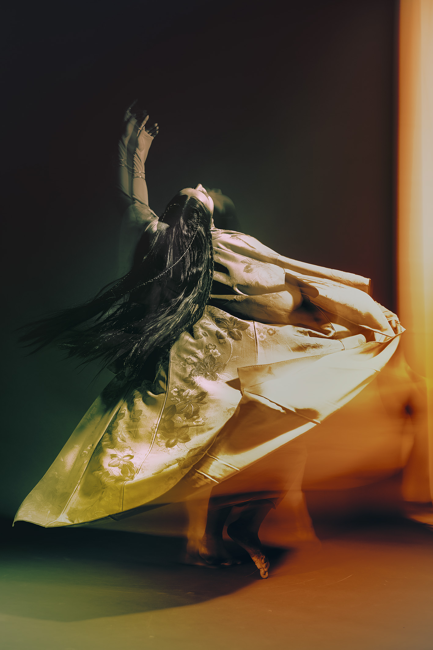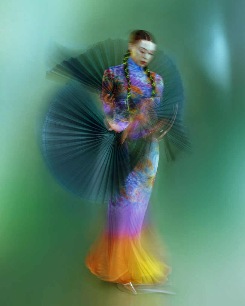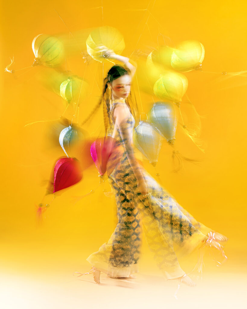 These include fans, lanterns, colorful fabrics… A little bit of everything. More specifically, the costumes she brought represent who she is, her culture, a reminder of her country… From those props, we combined them to create these photos. Linked to the audio that Shima has performed throughout her new album to keep the sound energy lingering in the photos. I think of the connection in the spirit of Flaming Asia – a name I use for all the connections with artists through the work and research of Chiron Duong. This resonance is both vibrant and alive, but also full of emotions. The identification here is definitely emotional.