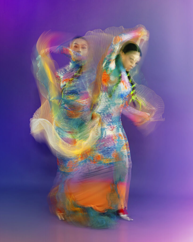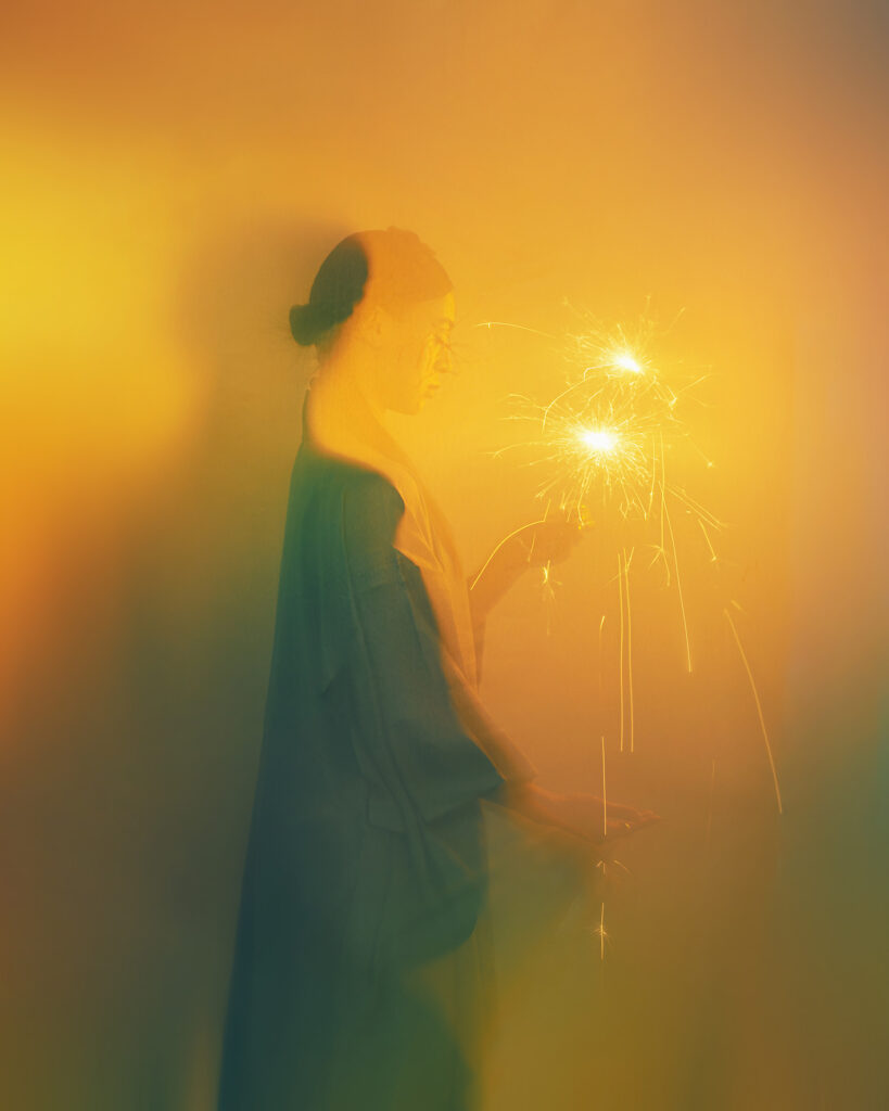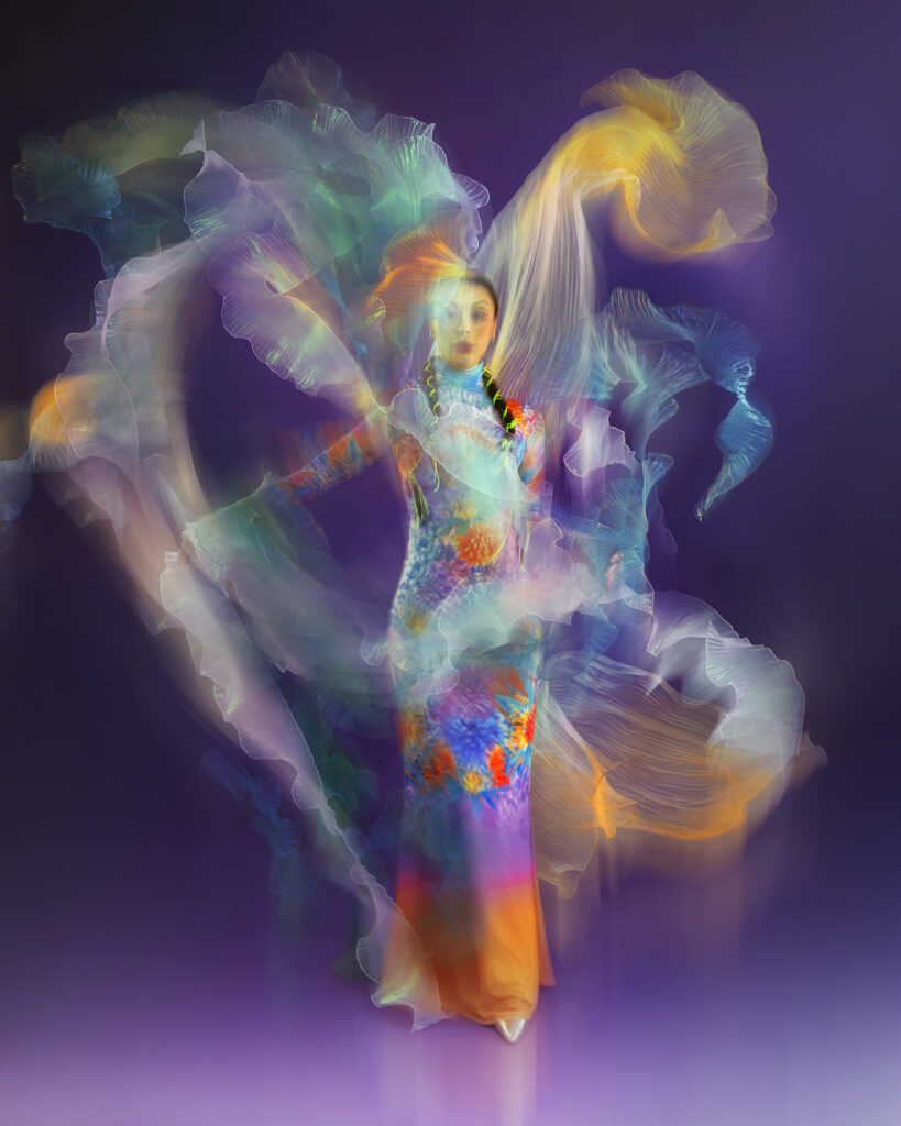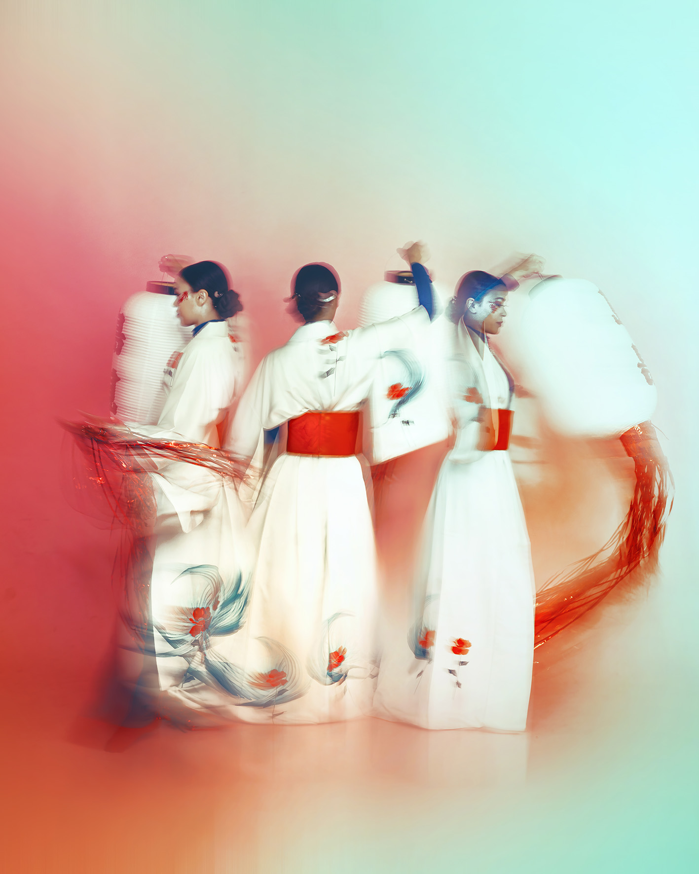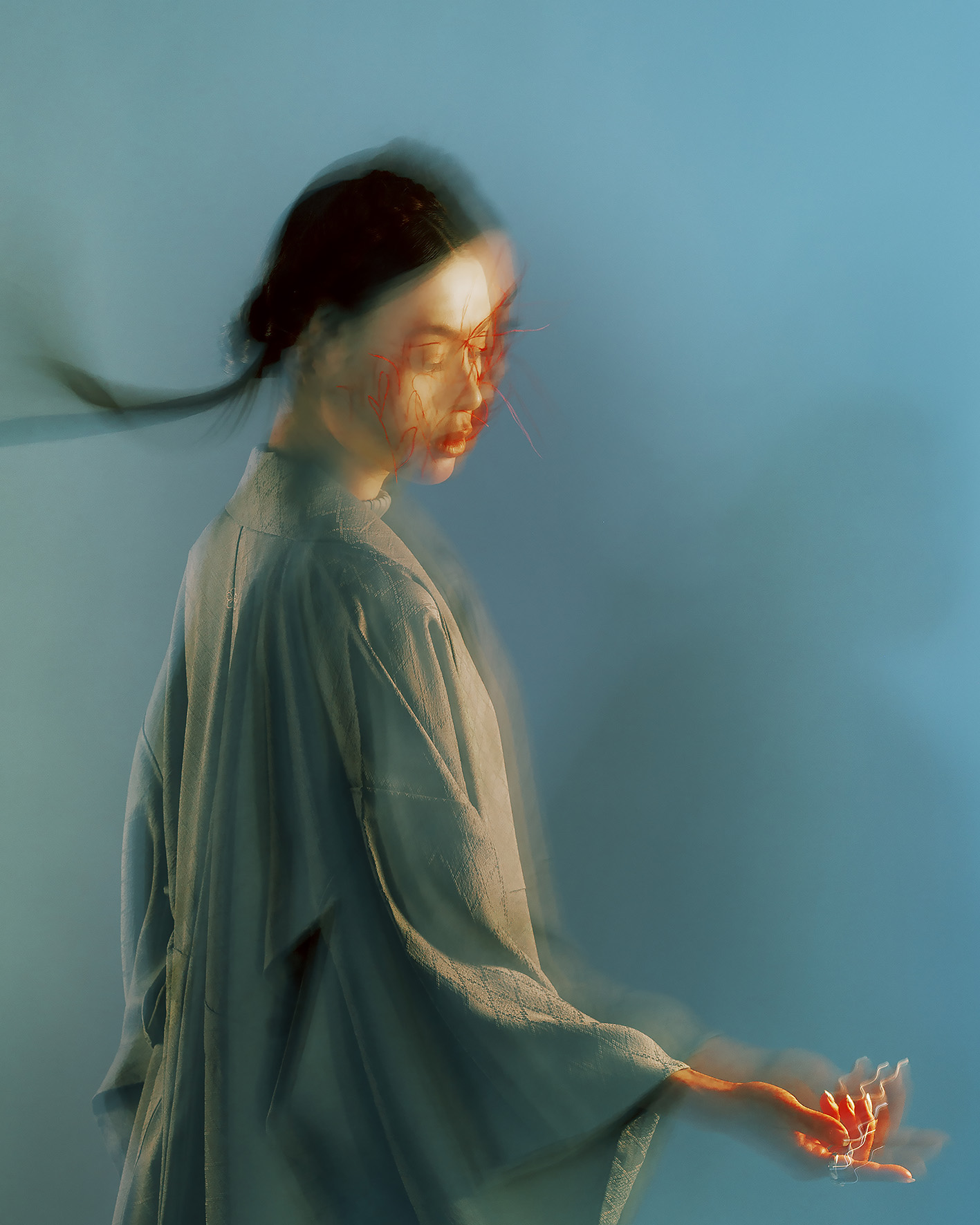 These include fans, lanterns, colorful fabrics… A little bit of everything. More specifically, the costumes she brought represent who she is, her culture, a reminder of her country… From those props, we combined them to create these photos. Linked to the audio that Shima has performed throughout her new album to keep the sound energy lingering in the photos. I think of the connection in the spirit of Flaming Asia – a name I use for all the connections with artists through the work and research of Chiron Duong. This resonance is both vibrant and alive, but also full of emotions. The identification here is definitely emotional.