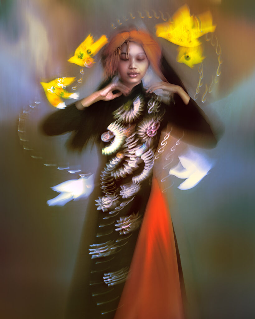 This year, I still keep the tradition of taking a photo album for Christmas and the New Year. A photo album combining handmade collage and Ao Dai. During the trips to the local areas of Vietnam, my friends and I decorated these photos and took them. I don’t have any message for this year. But I would like to borrow the name of the project that my colleagues and I are creating to title the photo album: Don’t be afraid to say love. (Đừng Ngại Nói Lời Yêu)