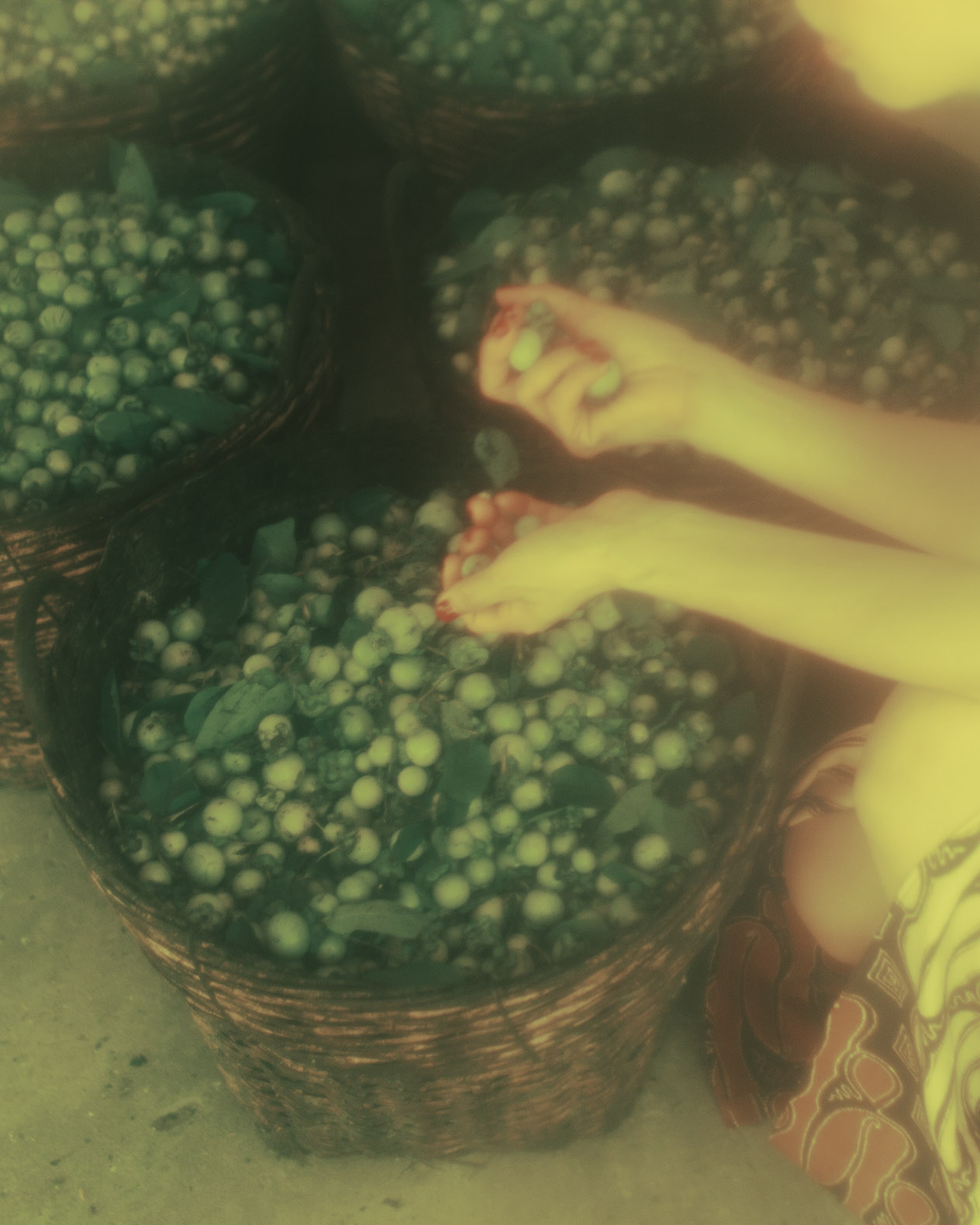 100kg of crushed mac nua (Diospyros mollis fruit) will have enough resin to dye 20m of silk.