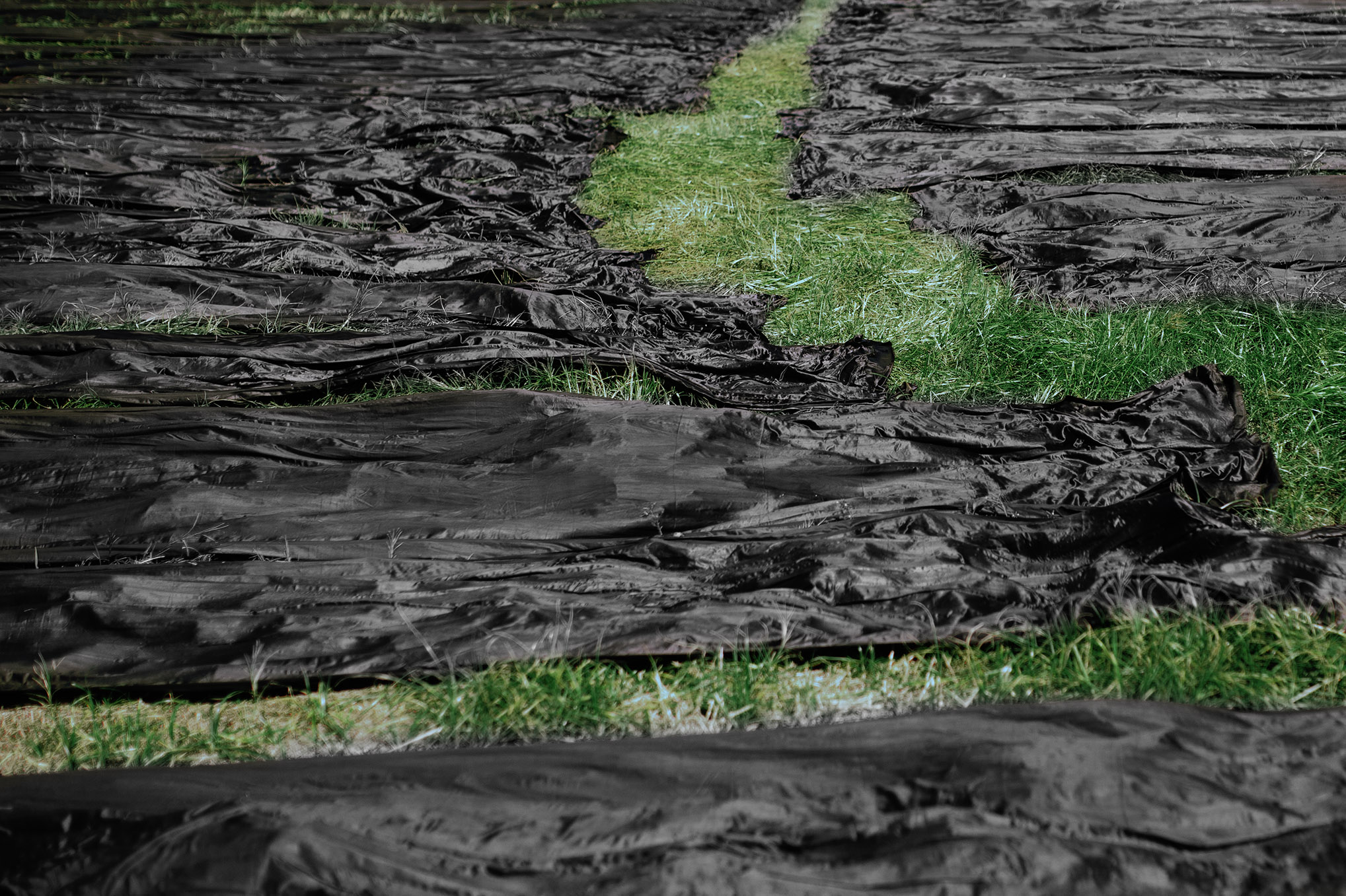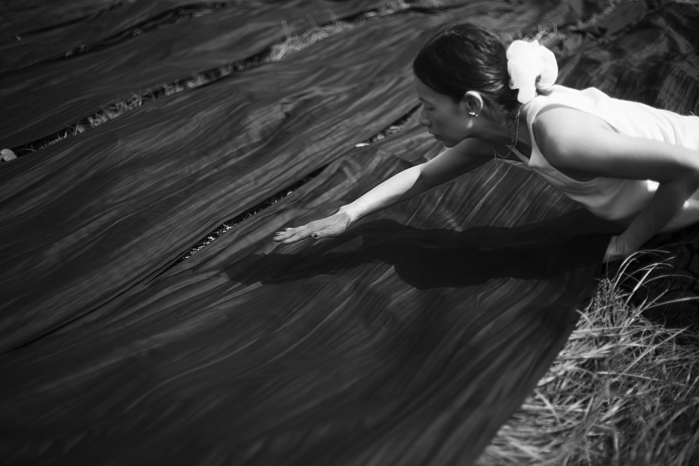 Lanh My A Silk is dried on grass that is stiff enough to hold the fabric up to the sun, but soft enough not to scratch the fabric.