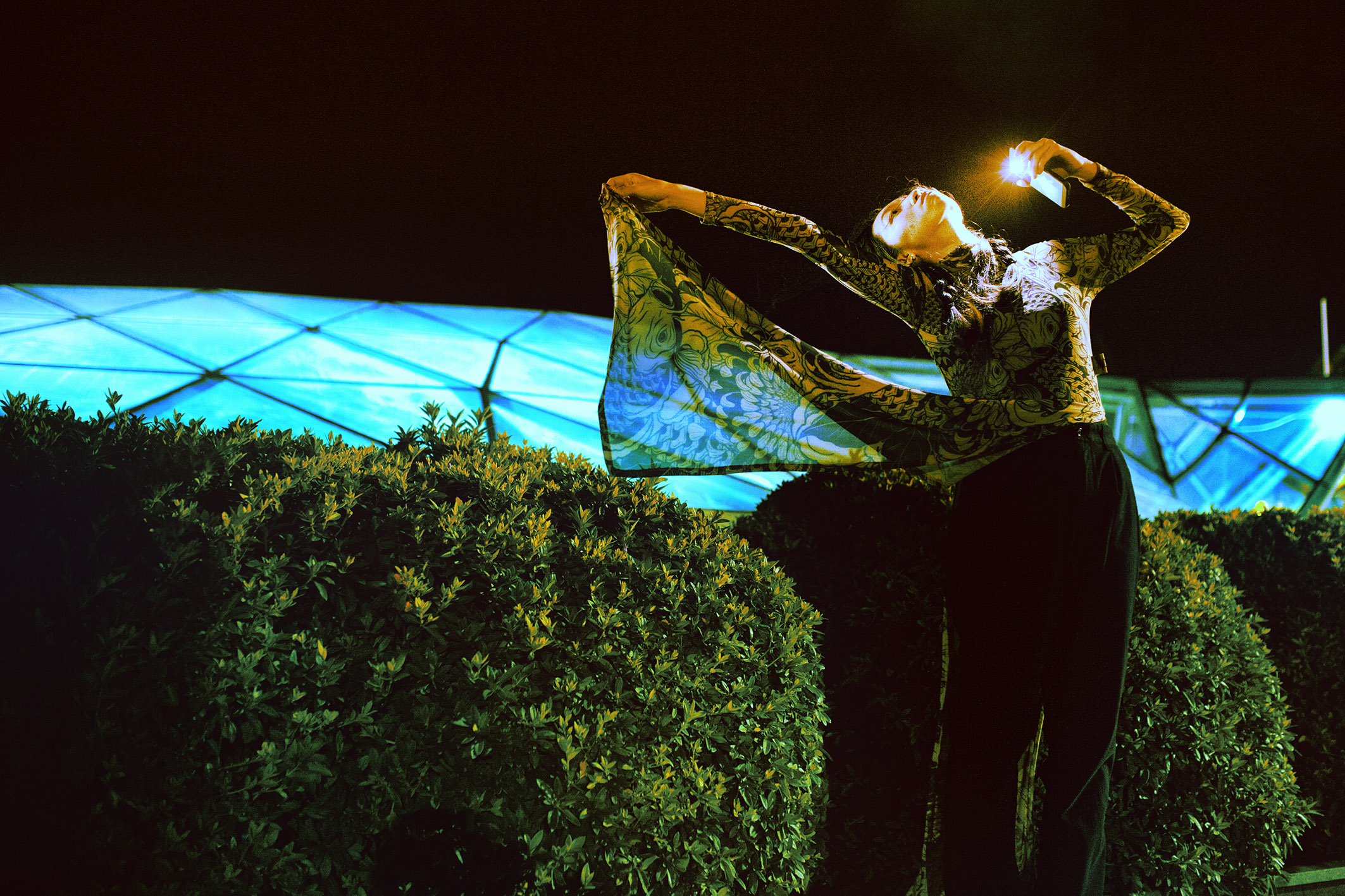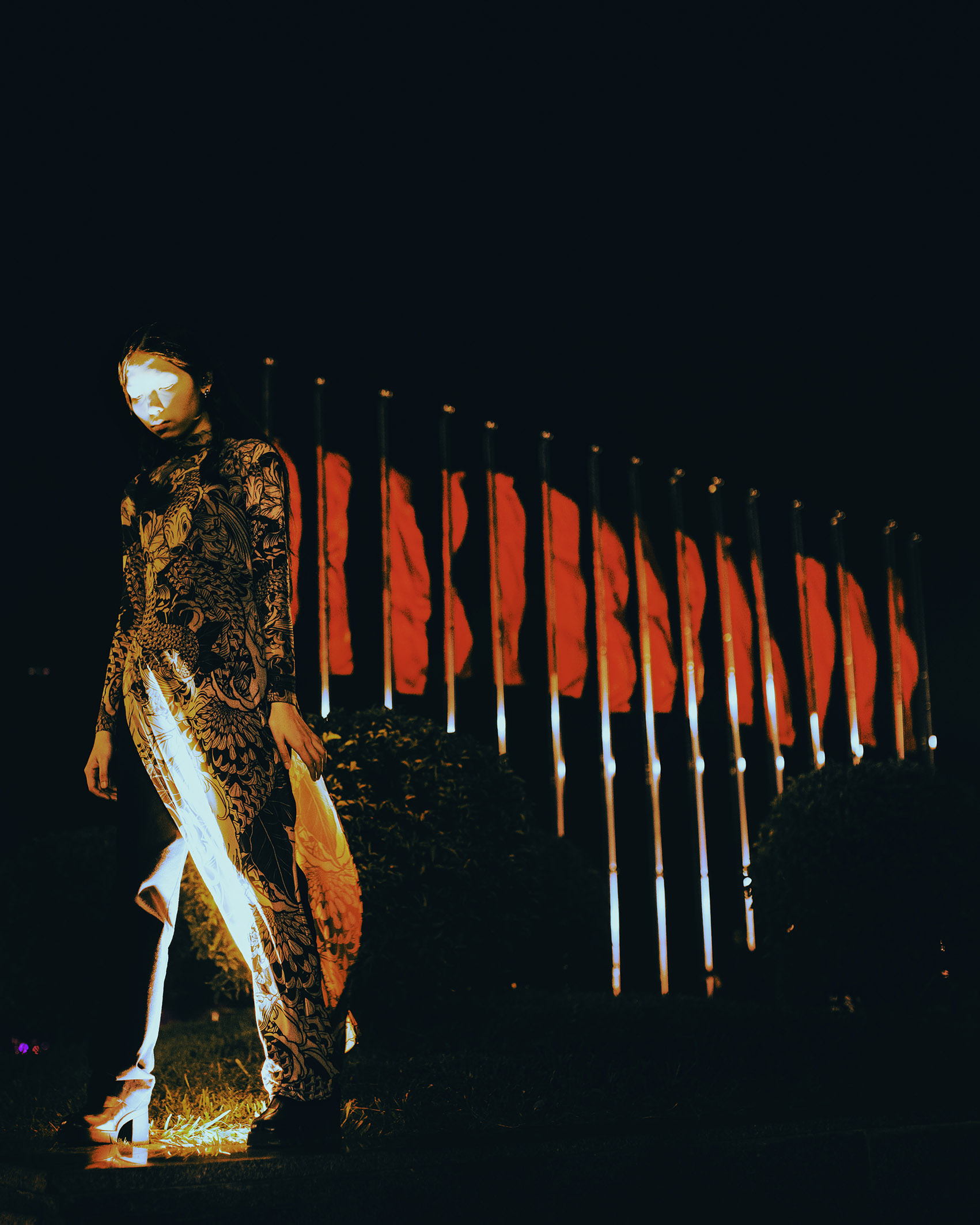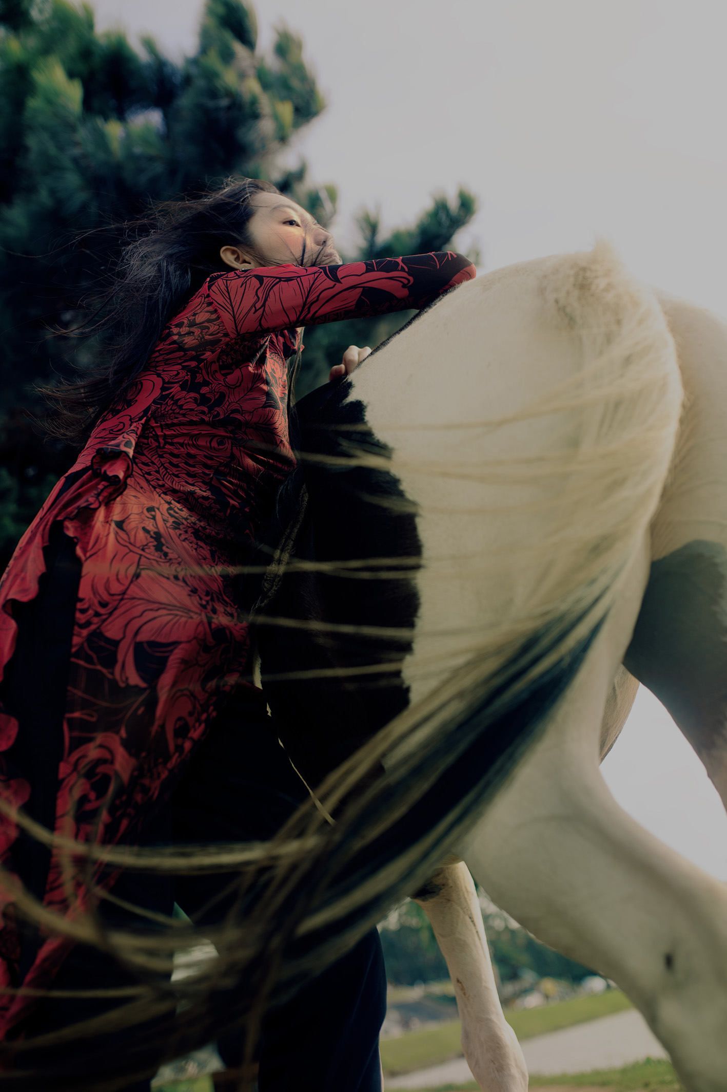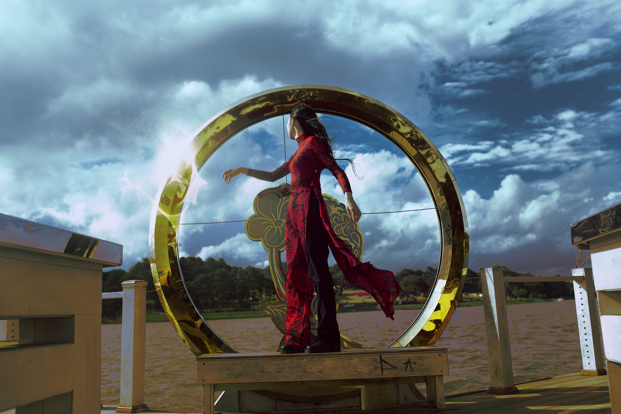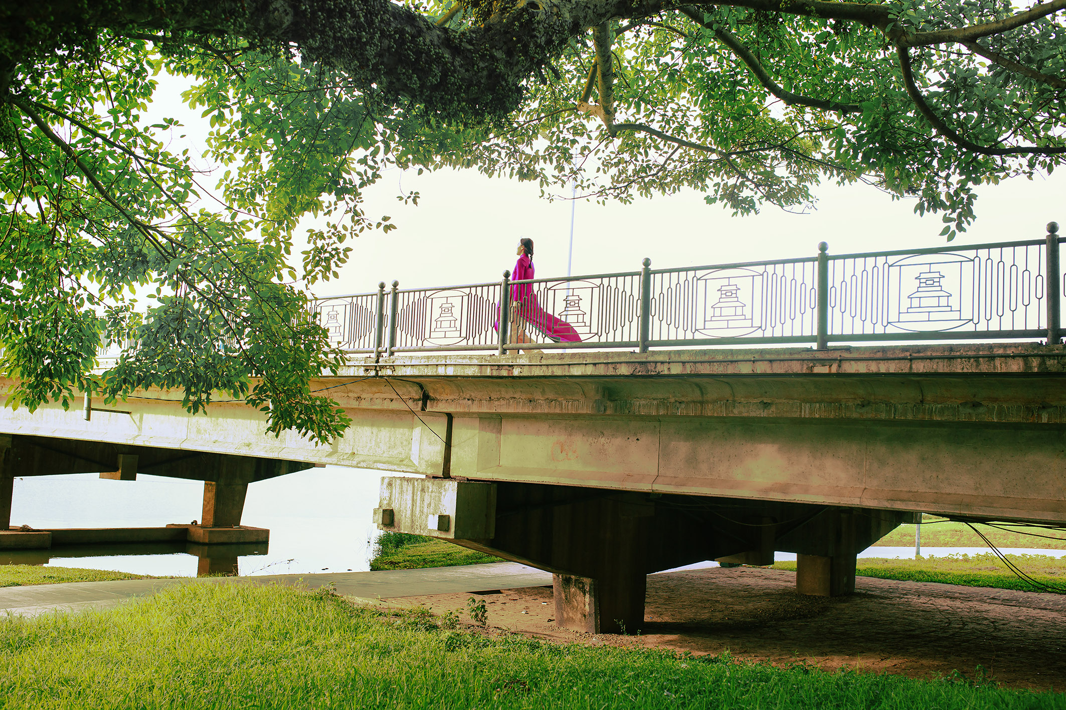 This is not only subject to the model but also objective due to natural factors such as the altitude of the area, the density of trees in the area, the temperature of the area, and the construction density of the area. Natural factors and artificial factors directly affect human life and thereby contribute to forming the overall energy of that space. Choosing the Ao Dai is an experiment because it is an attention-grabbing outfit, but still very close to the life of Vietnamese people, as an interesting interactive test.