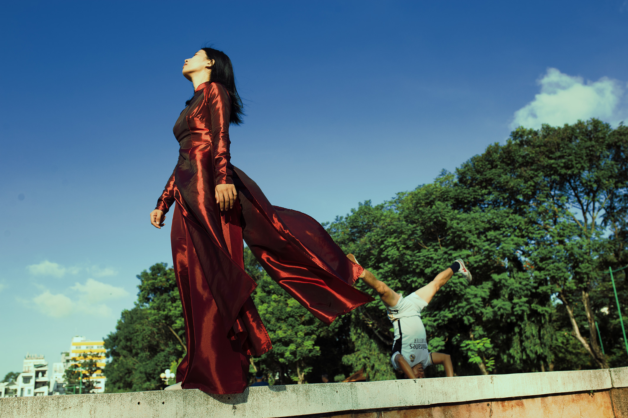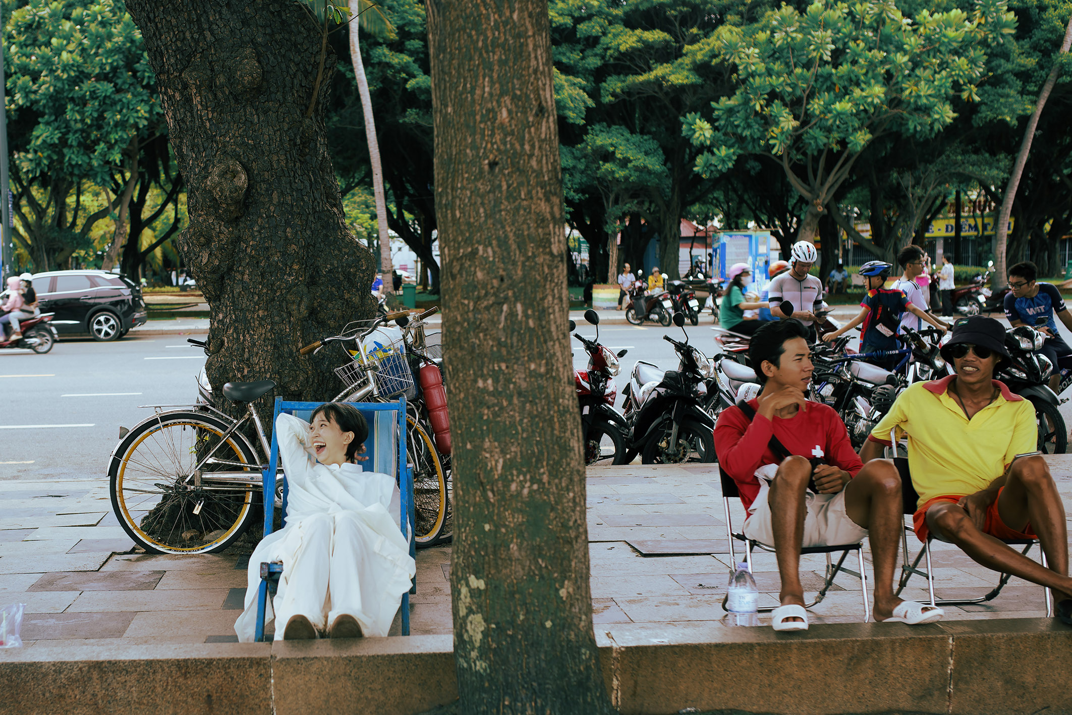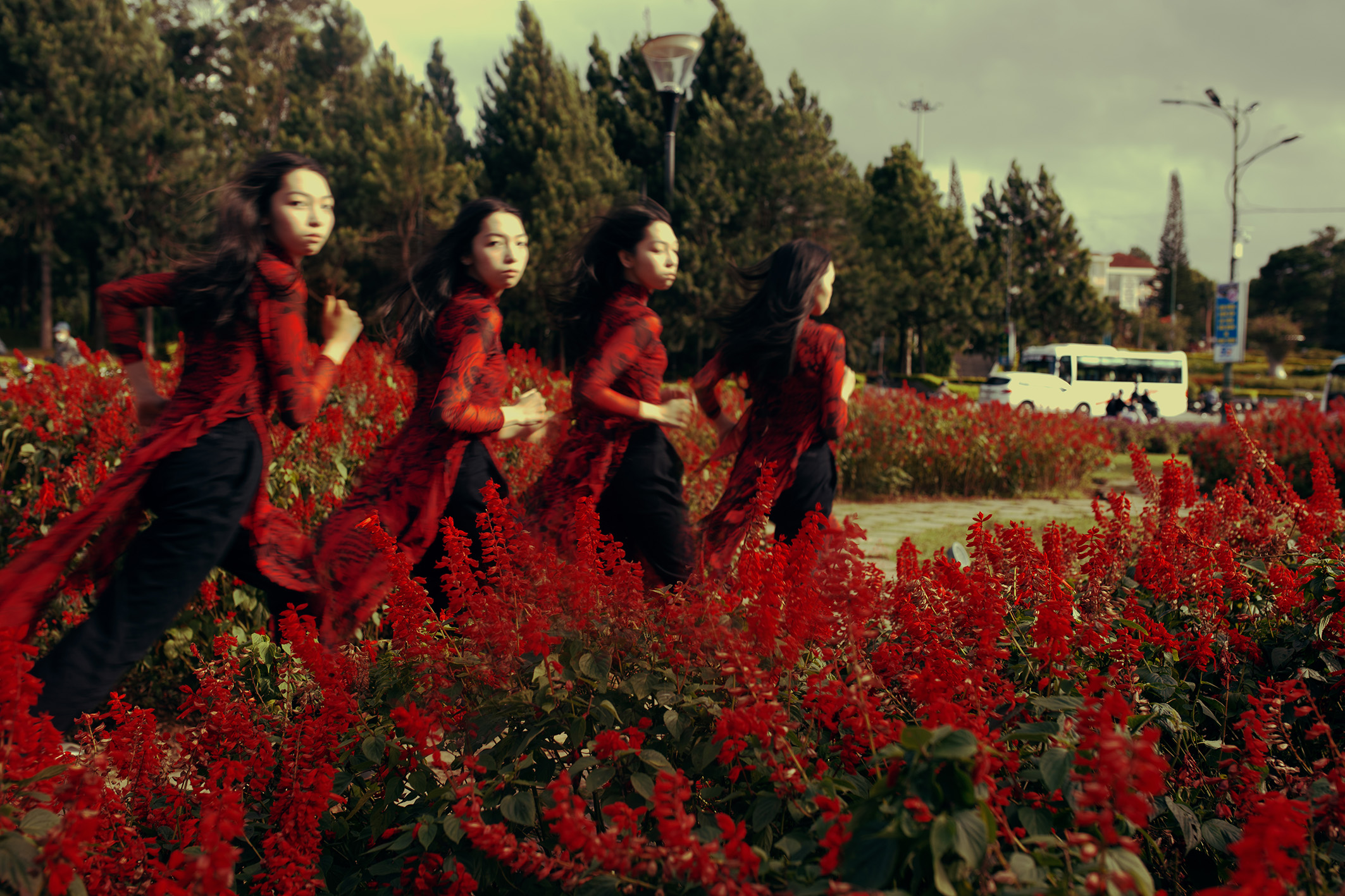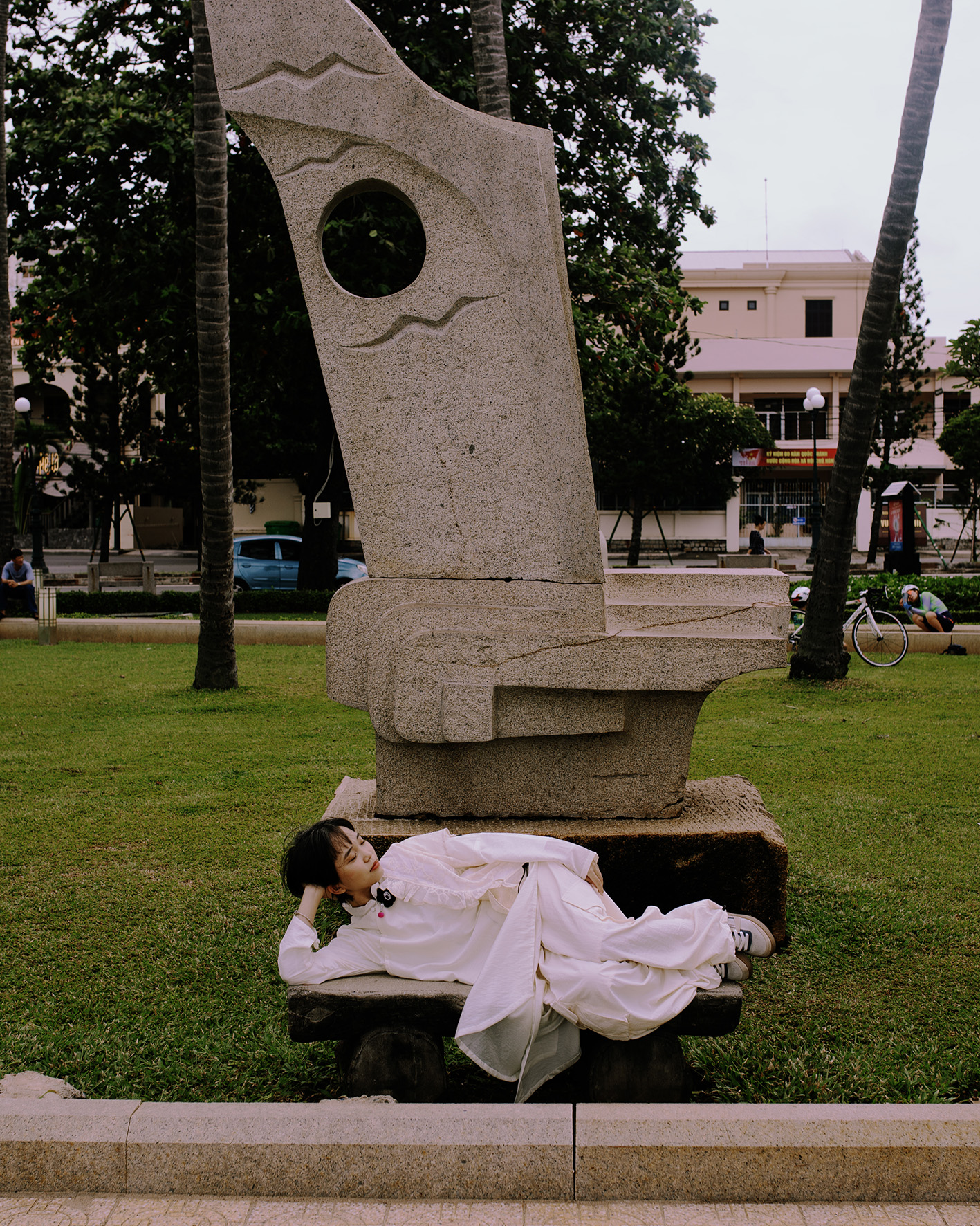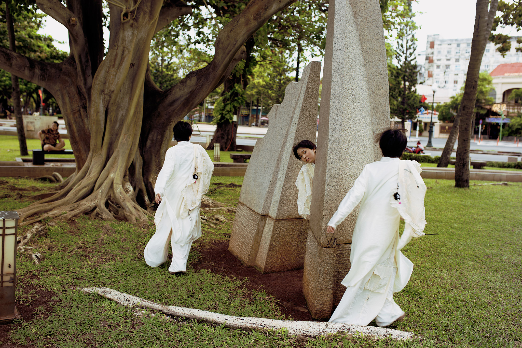 We wanted to test and find out the differences between 10 landscape spaces in 5 cities and localities stretching from North to South of Vietnam: Vung Tau Beach (HCMC), Sai Gon (HCMC), Da Lat, Hue, and Hanoi. At each stop, we chose 2 parks/open spaces to test the impact of activities and landscapes on the models in the photo. For different landscapes and different cultures, the models will have different emotional reactions.