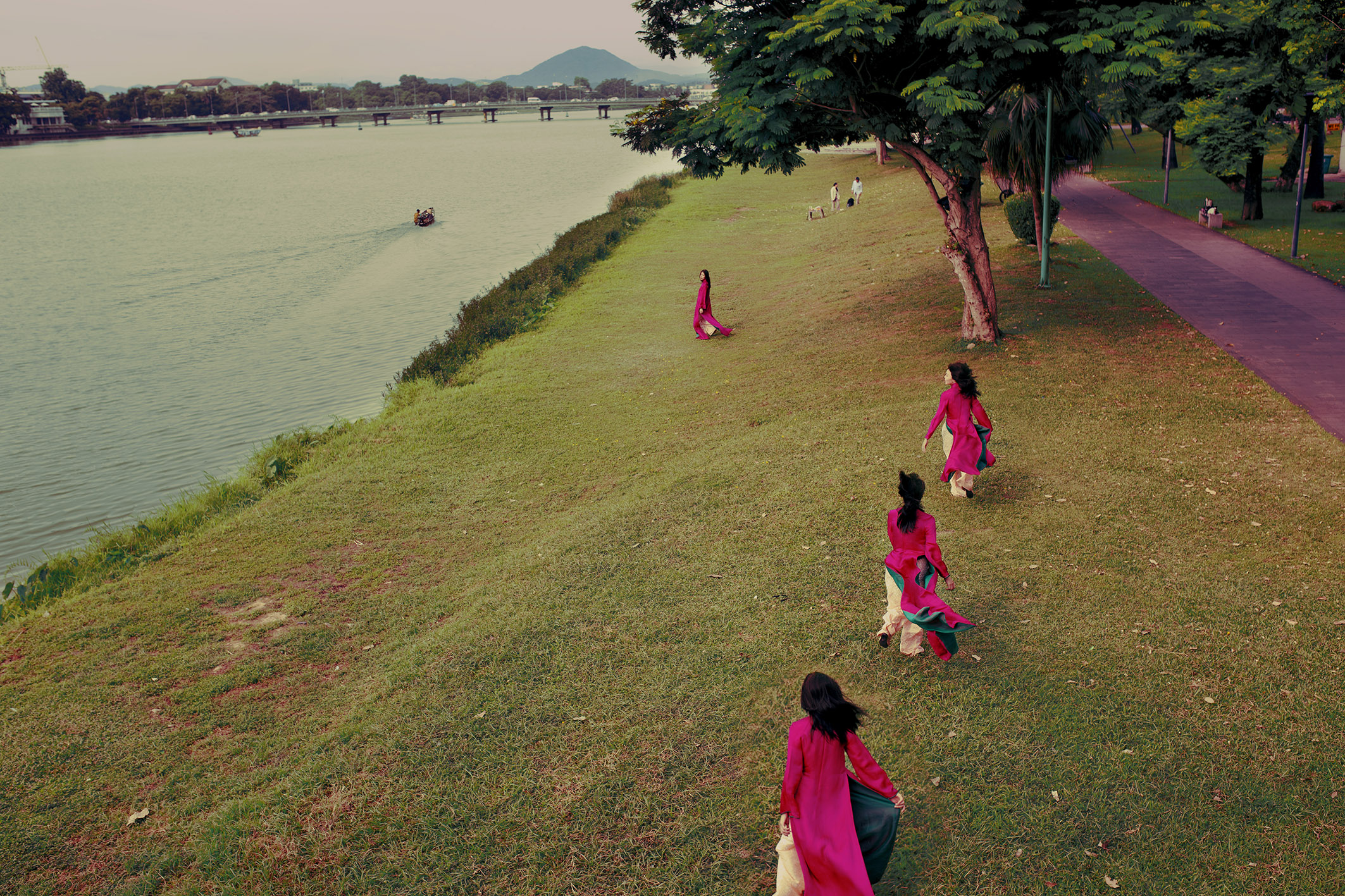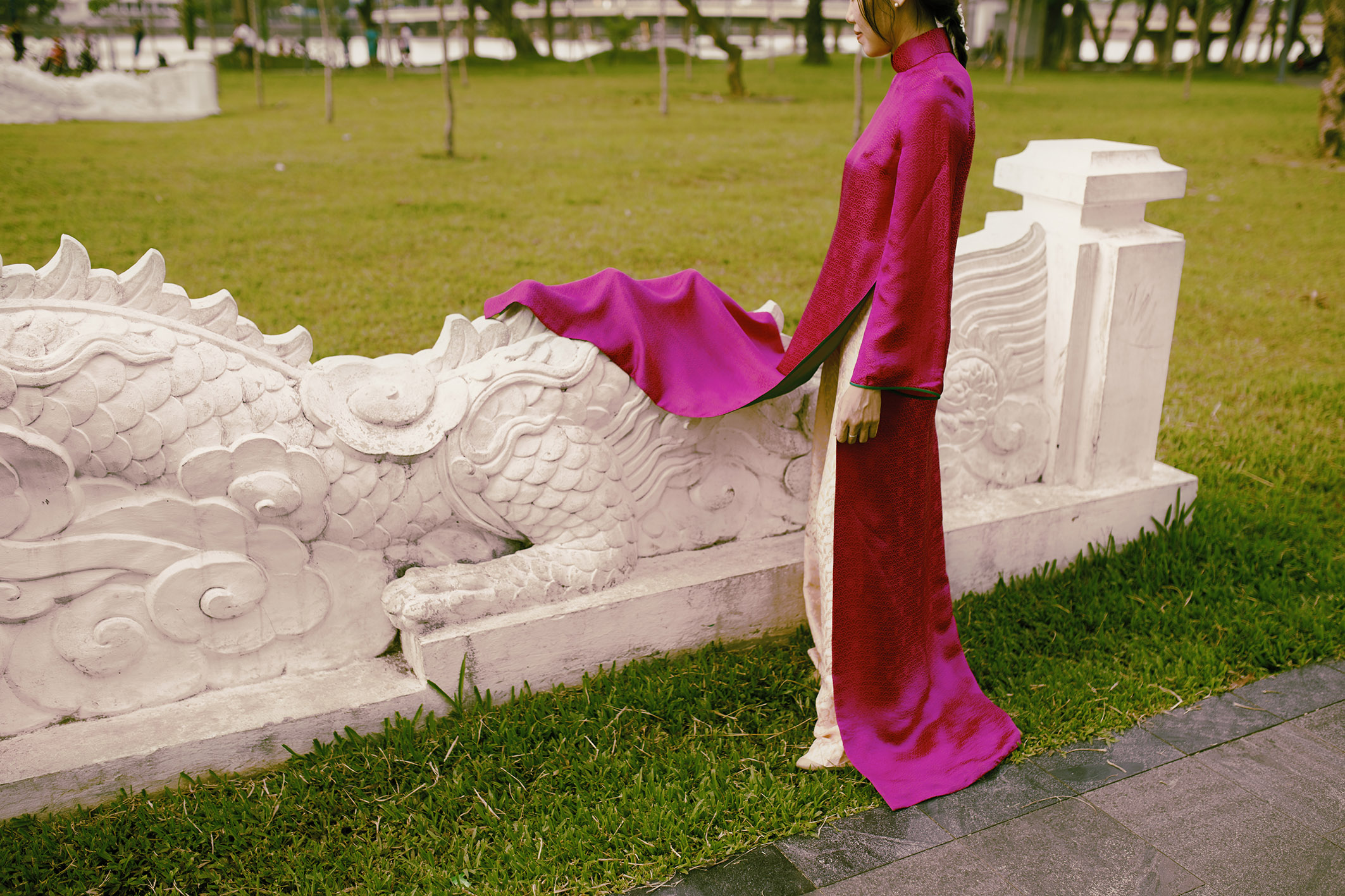 From the interviews with these Ao Dai designers, we selected 5 localities in Vietnam that have a connection in terms of messages with the brands. Next, we tested these Ao Dai designs in parks/open landscape spaces in these 5 localities.