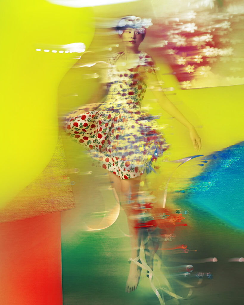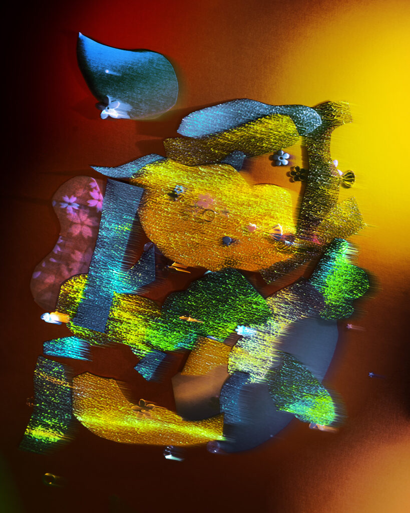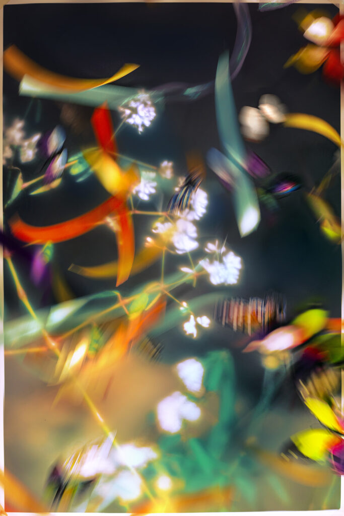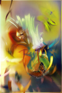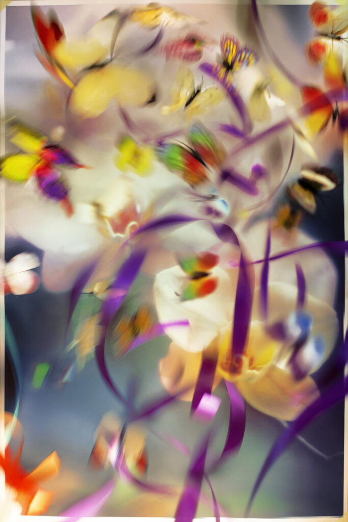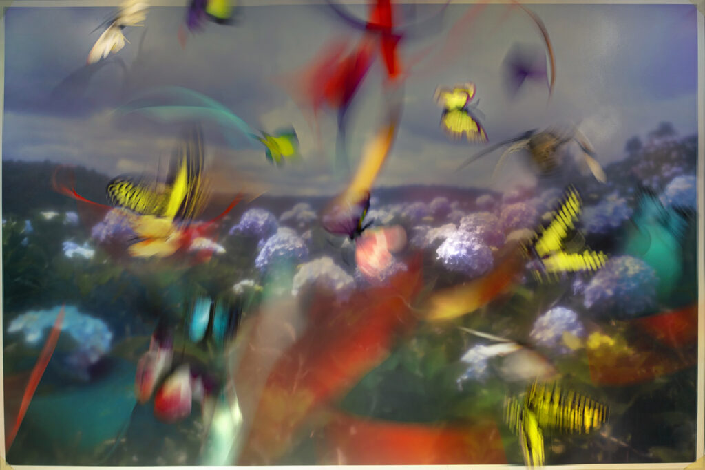 – Flowers for Monday Blues: (collaboration Dremachi Space) The beauty of nature goes hand in hand with humanity and science. I experiment with creating magical, breathtaking, and stimulating feelings by miniaturizing landscapes I capture on my travels, printing and re-shooting them with other decorative props such as butterflies and ribbons.
