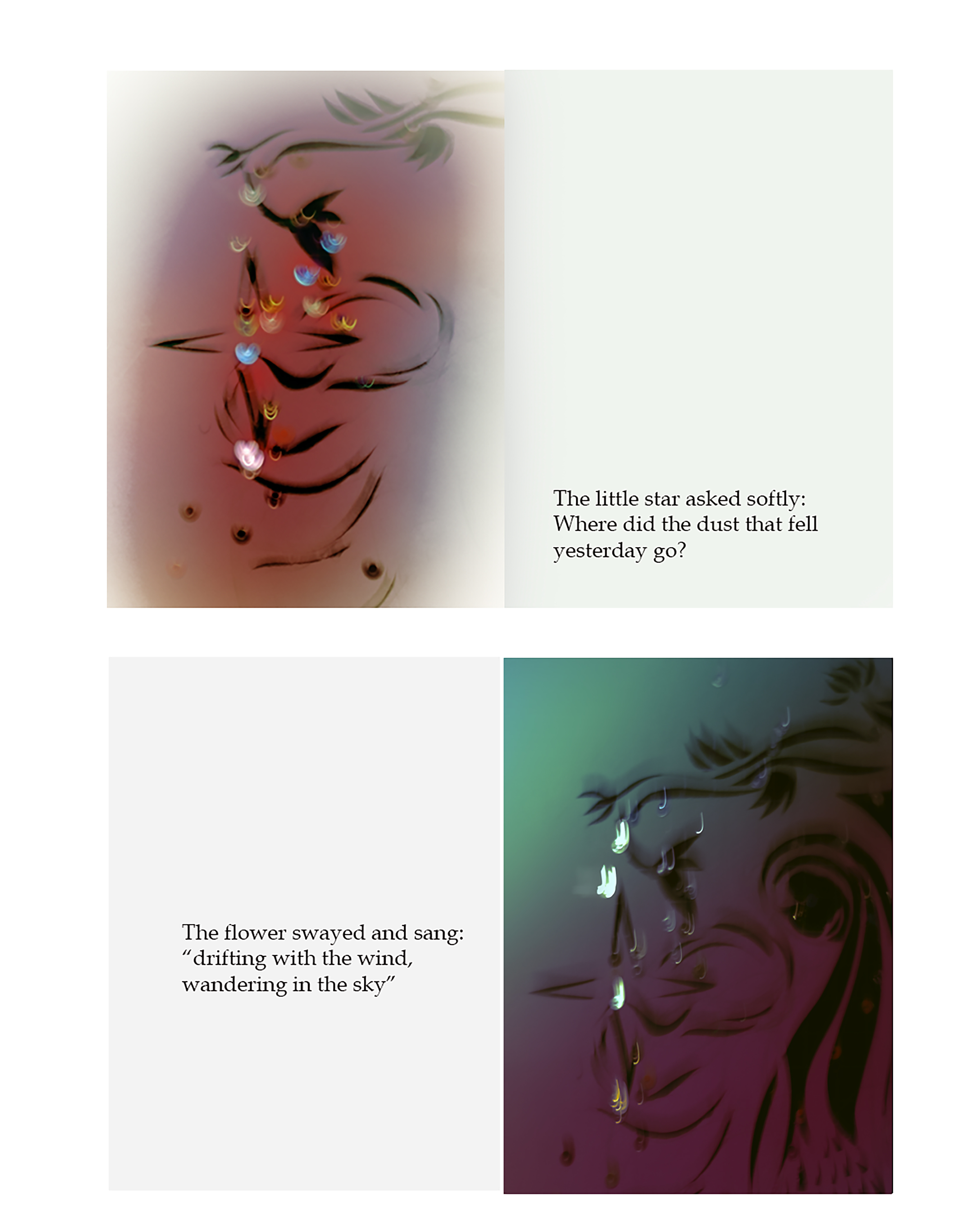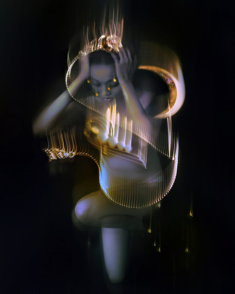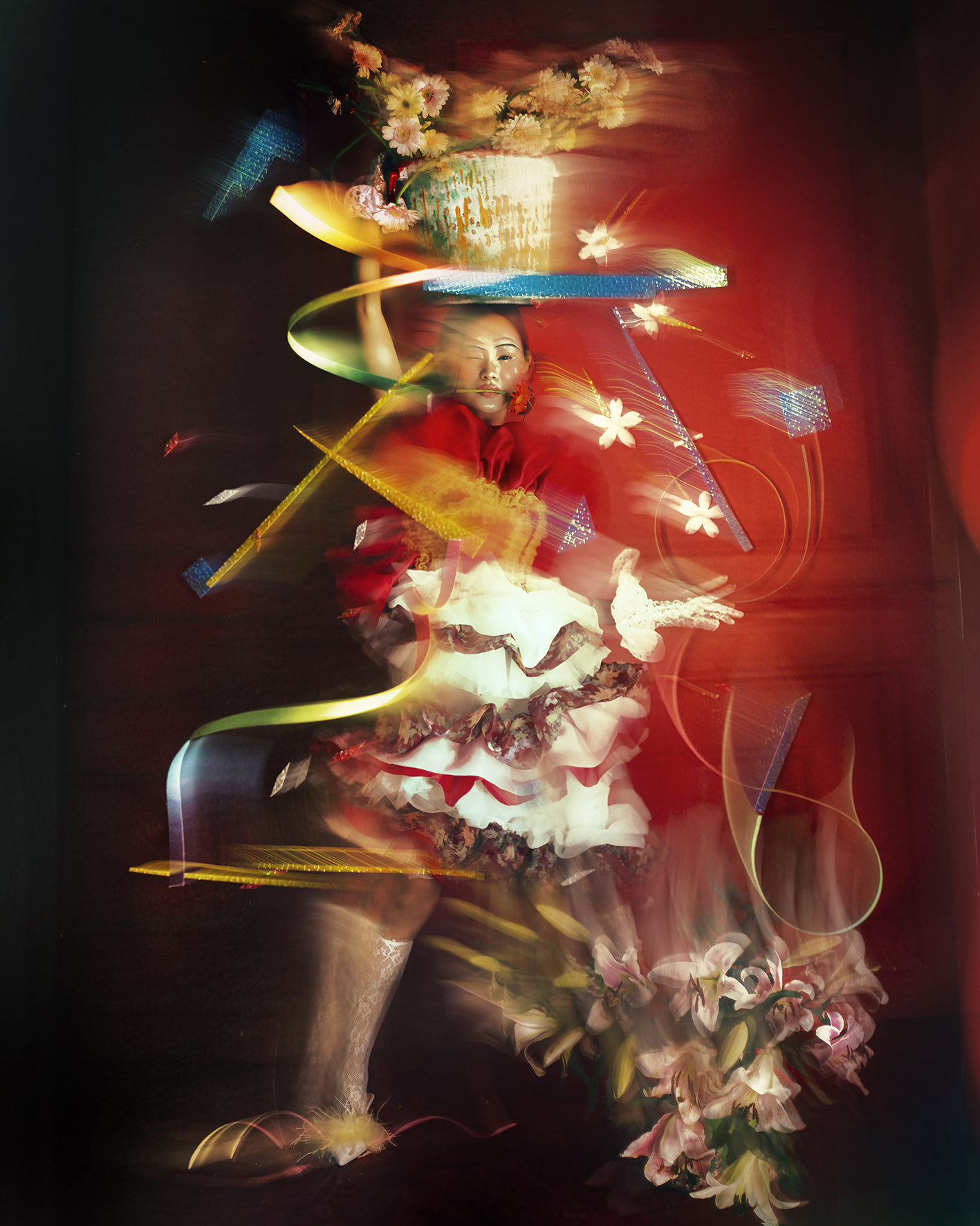 – Flowers for Monday Blues: (collaboration Dremachi Space) The beauty of nature goes hand in hand with humanity and science. I experiment with creating magical, breathtaking, and stimulating feelings by miniaturizing landscapes I capture on my travels, printing and re-shooting them with other decorative props such as butterflies and ribbons.