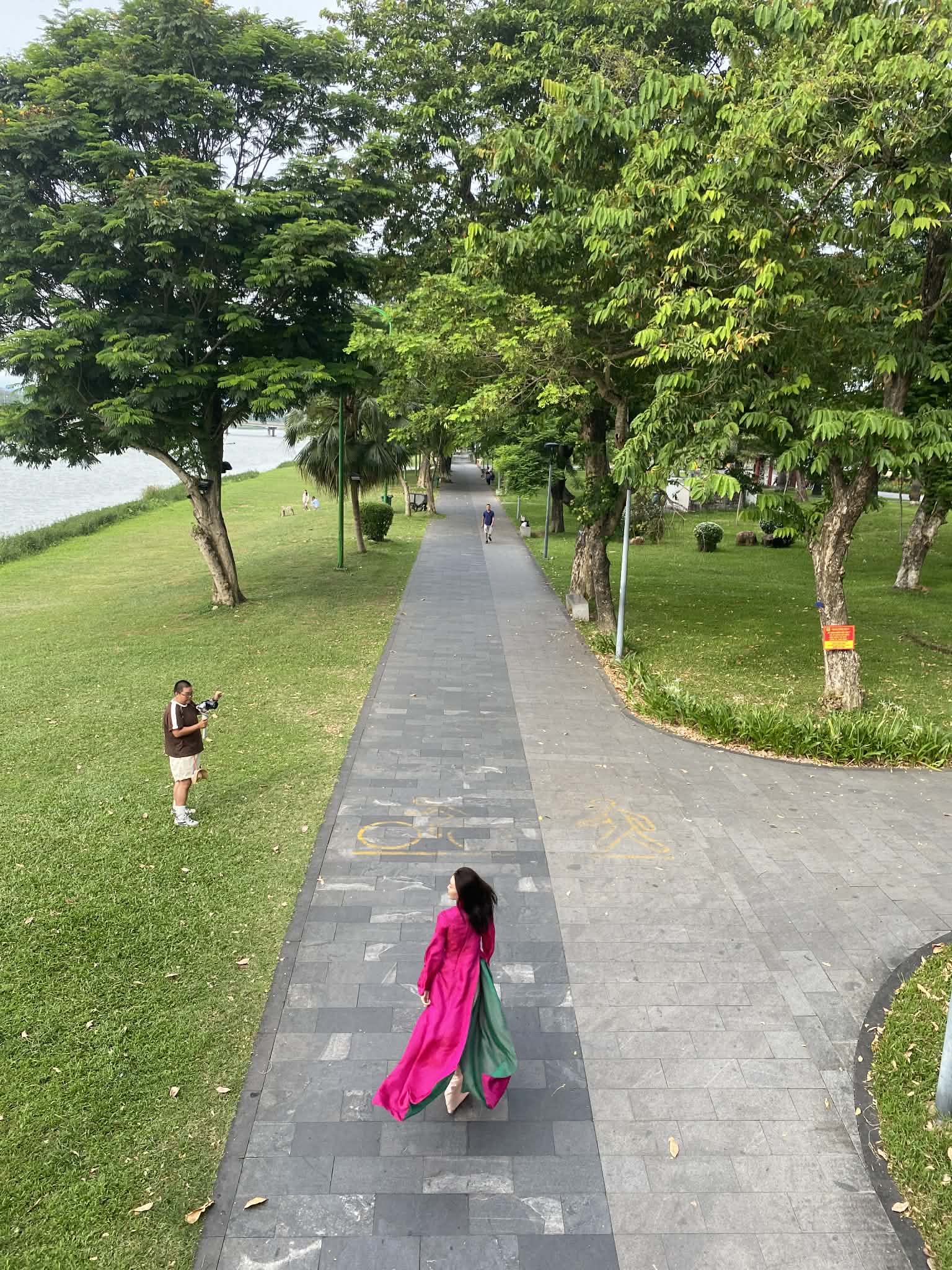 Day 2: The subject will wear a traditional Vietnamese dress/designer outfit for a photoshoot at the scenic locations we selected on the first day. However, we also need some props for the shoot, so in this step, we will ask the subject if they have any souvenirs from the city in mind. We will also visit some traditional markets or souvenir shops before going to the photoshoot location to purchase some signature regional props. Furthermore, if there are fallen flowers in the area, we can improvise with these landscapes to create a connection between the subject and the plants grown in the area we will be photographing. The challenge we set for ourselves is to avoid knowing too much about the location we’re photographing, maintaining a mindset of exploration and observation of the differences in that place. For example, here there might be people exercising, there might be street vendors, and elsewhere there might be ancient trees, etc. And that’s always the most interesting part of photography, when we rely on the circumstances and the unfolding of life to blend into it.