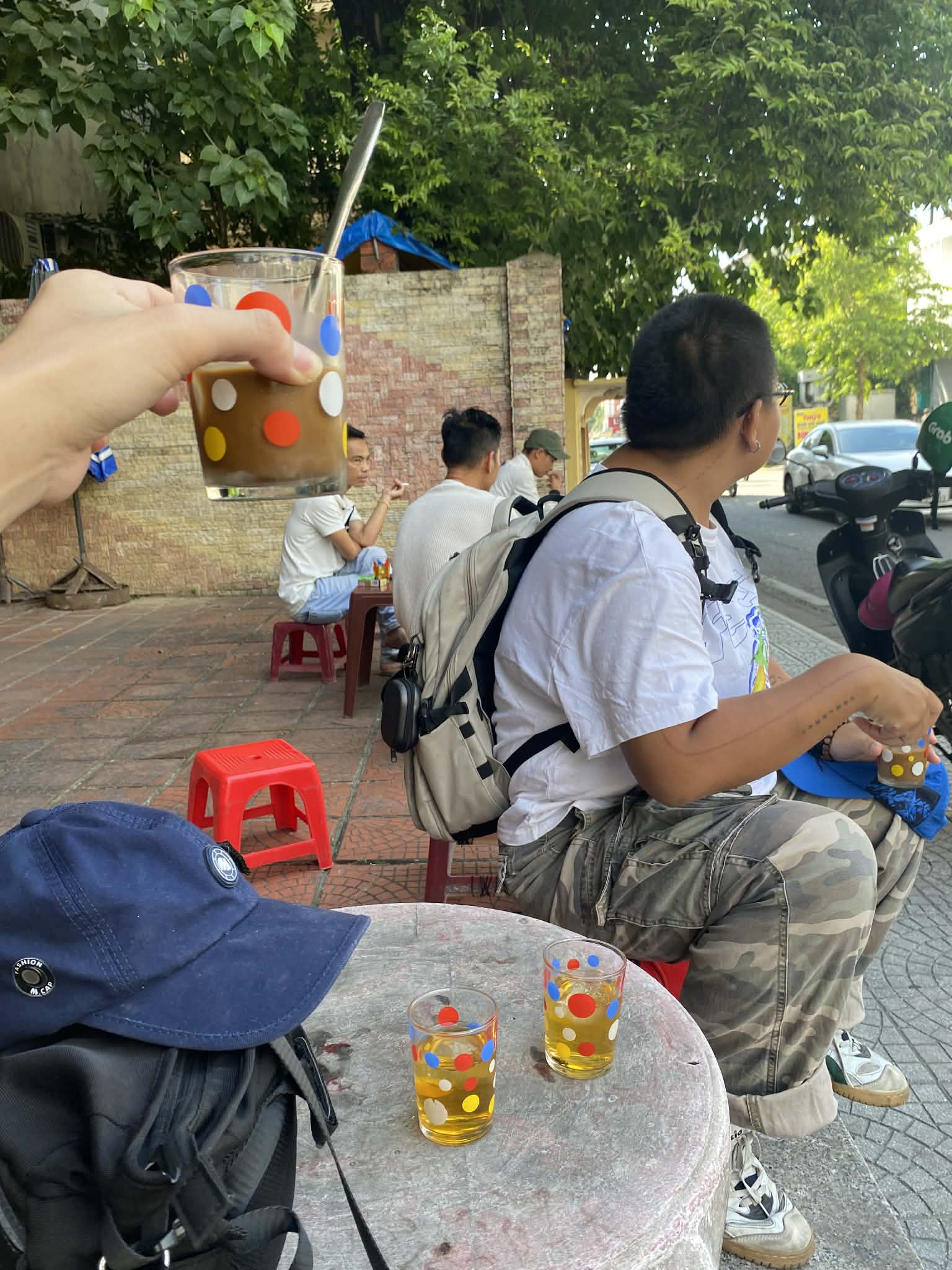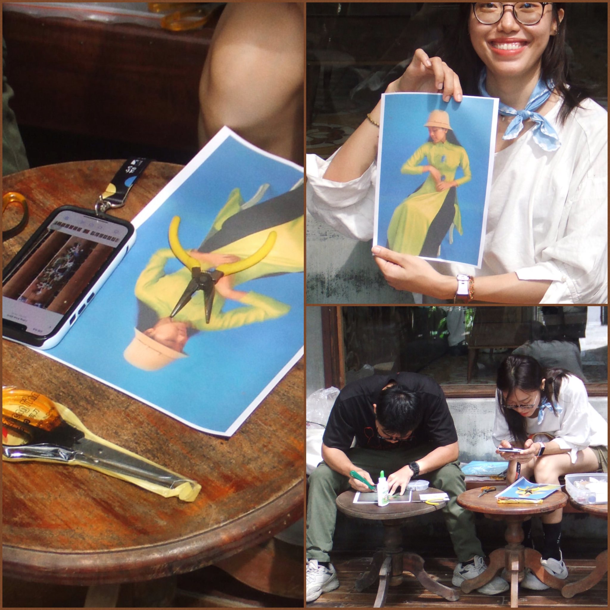 We’ll choose a café we enjoyed from a tourist’s perspective, have morning coffee, chat, and do a craft workshop decorating photos/postcards with motifs that we felt matched our mood at those locations.